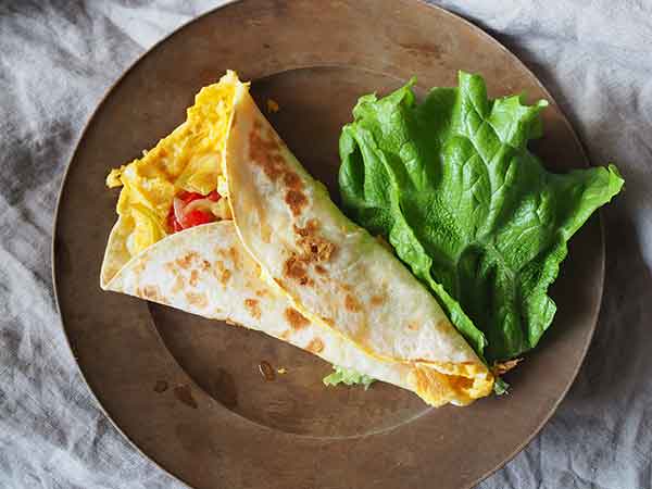 主食となるトルティーヤ、そこにタンパク質の卵、そして野菜。