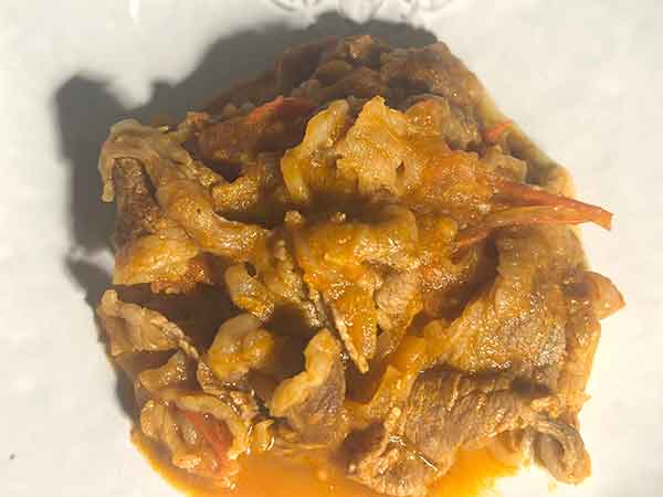 見た目はハッシュドビーフのようで、食べた感じはスパイシービーフストロガノフといった印象でしたが、かなり美味しく、大好評。